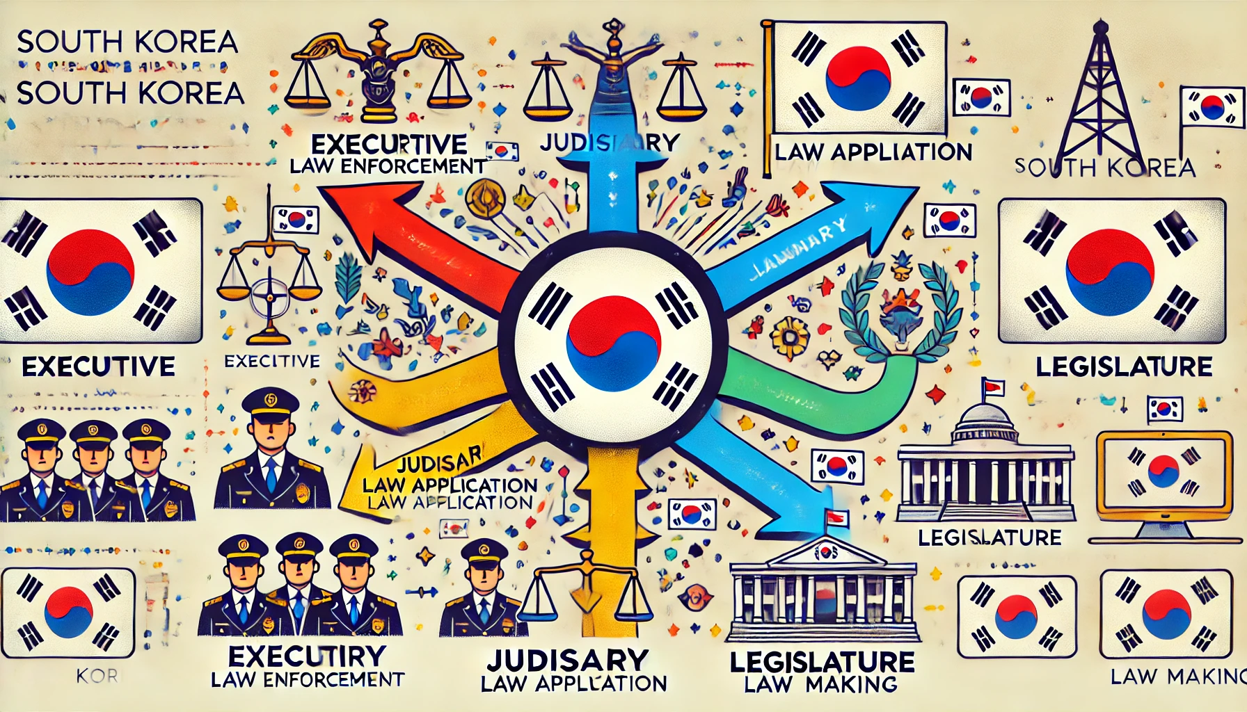 - 국가기관조직사항: 대통령선거, 행정각부 · 법원 등의 조직, 지방자치단체의 종류 등